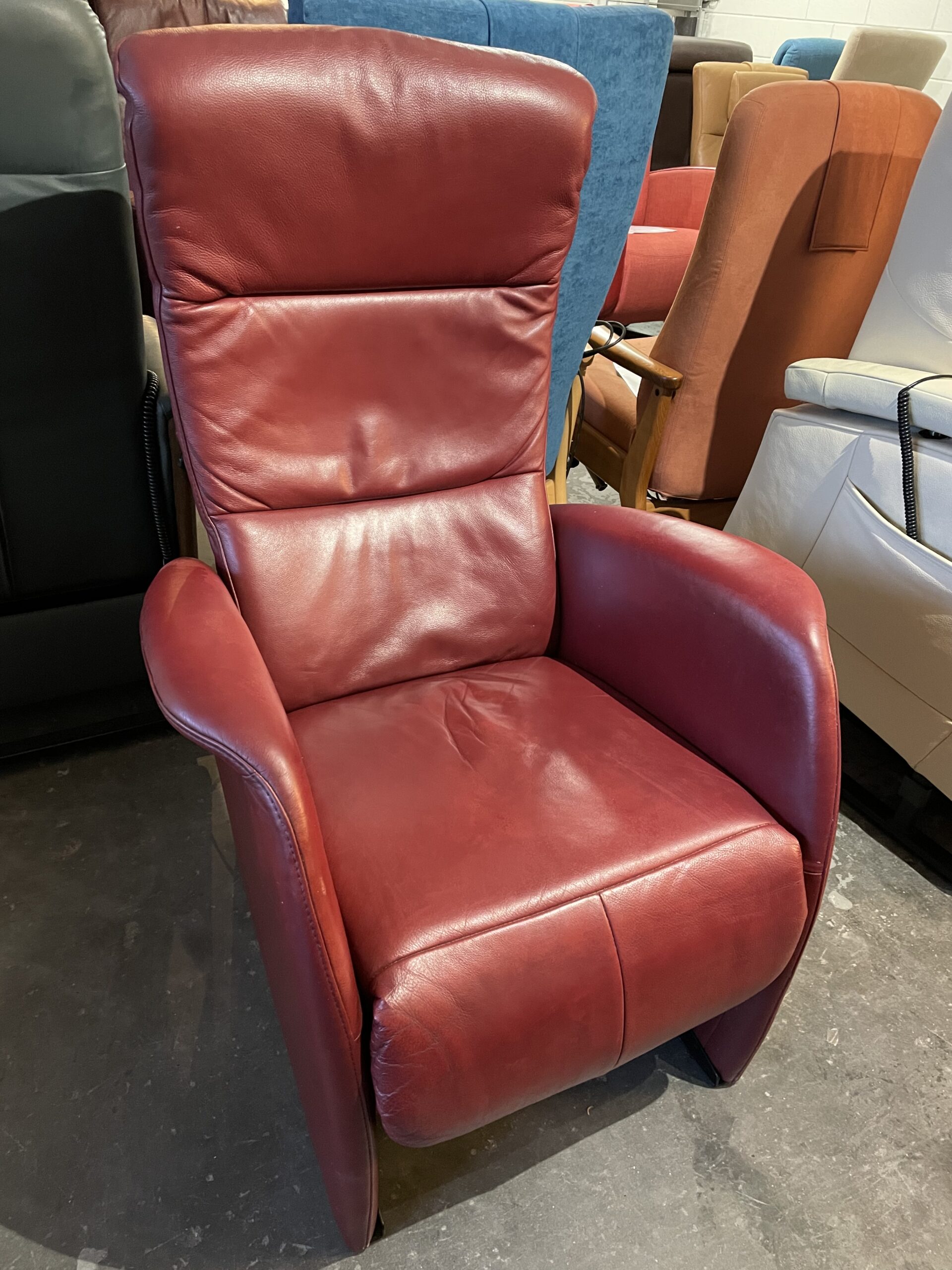 VERKOCHT! Ciar sta op relax stoel Bordeaux rood leer