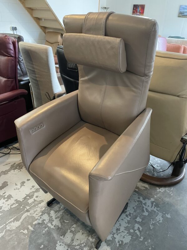 VERKOCHT! Prominent Sta op relax stoel medium taupe leer